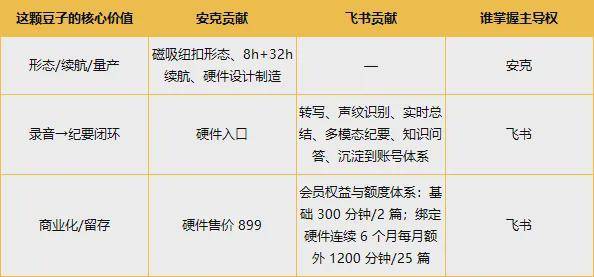 所以这颗豆子的核心“科技感”,其实是建立在飞书的AI能力之上。这也意味着它更像一场“用合作换入口”的交易,安克提供的是硬件形态与量产,飞书补的是工作流与AI闭环,而后者才是产品的真正壁垒。