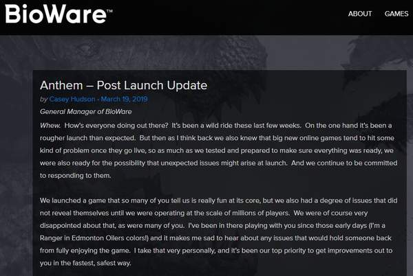 对于游戏在发售面对的种种问题,昨晚Bioware总经理Casey Hudson则在游戏官方发表了一篇相关博客,承认了游戏在发售后面临的问题超过了之前他们的想象。