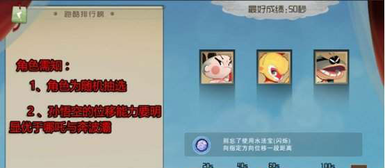 开始跑酷时将在哪吒、孙悟空以及奔波灞中随机抽选!