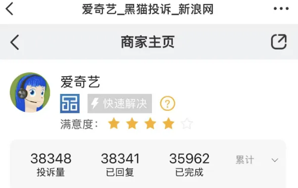 黑猫平台数据显示,截至目前,爱奇艺累计投诉量超3.8万条,仅近30天就新增投诉900余条,用户投诉主要集中在“不知情自动续费”“乱扣费”“退款难”等方面。