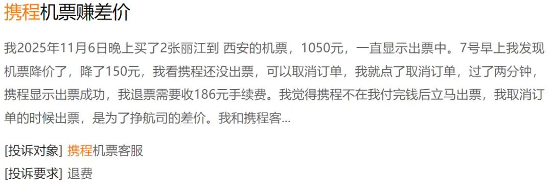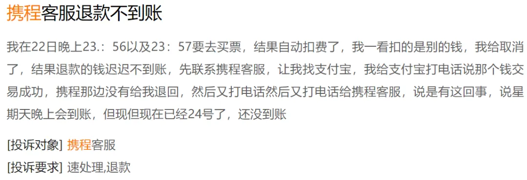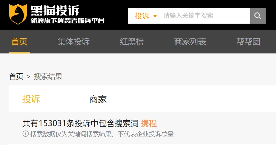 在黑猫投诉平台上,携程作为OTA(在线旅游)头部平台,投诉量稳居前列,累计已有超过15万条,核心问题集中在退款难、乱收费和强制搭售三大类。