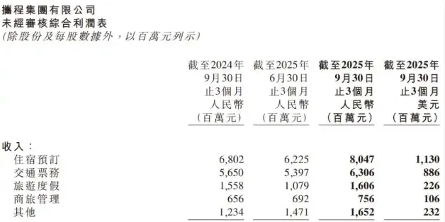 剔除其他收入部分,携程第三季度营业利润为55.74亿元,相比去年同期的50.06亿元,增长约11.35%。