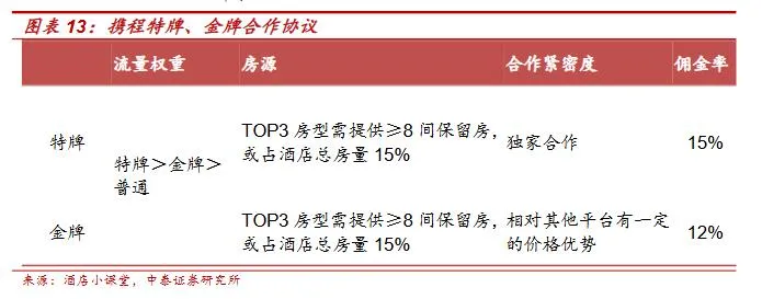 另一方面,携程大幅提高佣金率,从商家身上多赚取利润。中泰证券研报显示,携程住宿预订的综合佣金率大概在8%-10%,但这只是“基础版”。要是想评上平台倾斜流量的特牌、金牌,佣金率直接飙升到12%-15%。