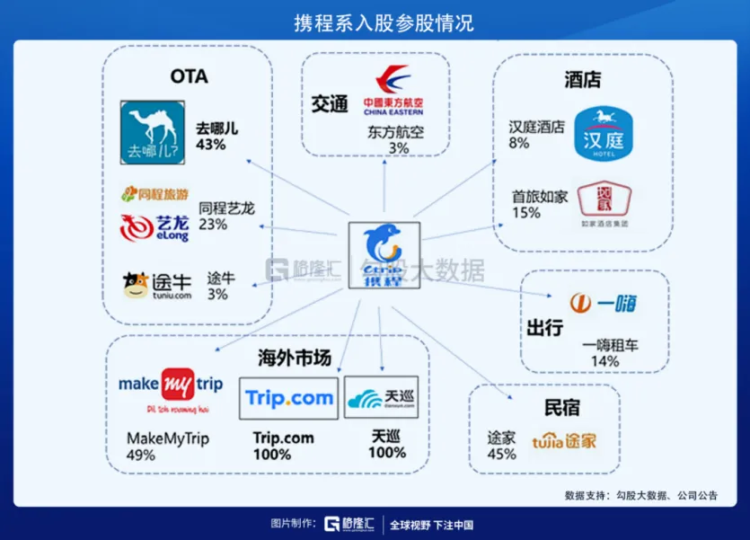 一方面,携程通过资本运作收购竞争对手,巩固市场份额。国内方面,2015年携程收购去哪儿网,整合后形成国内OTA矩阵。同年,其又收购艺龙,强化住宿预订能力;而此前一年还收购了途风网,拓展国际旅游业务。2025年3月,携程控股民宿品牌大乐之野,布局特色住宿。