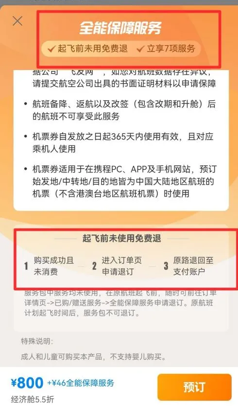 携程对C端的“销售”则更为隐蔽。例如,机票预订页面将保险、抢票服务设为默认选项,用户需手动取消才能获得裸票价格;还通过捆绑销售保险、接送机、酒店券等增值服务,进一步从商家和消费者口袋里攫取利润。