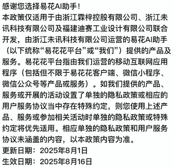 易花花原名“易借速贷”,2025年6月被运营方浙江未讯科技有限公司宣布全面升级并更名为“易花花”。