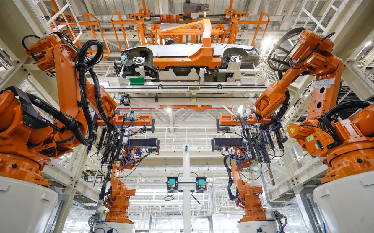 在冲压车间、车身车间、涂装车间、装配车间这四大车间,皆采用了世界顶尖的制造技术,包括德国舒勒全自动冲压生产线、德国库卡和日本发那科智能装备、德国杜尔的全自动涂装生产线以及全自动装配线等。运用人工智能、物联网技术实现冲压、车身、涂装以及装配等生产线24小时不间断无人化作业,可以说是世界最高端智能“黑灯工厂”。