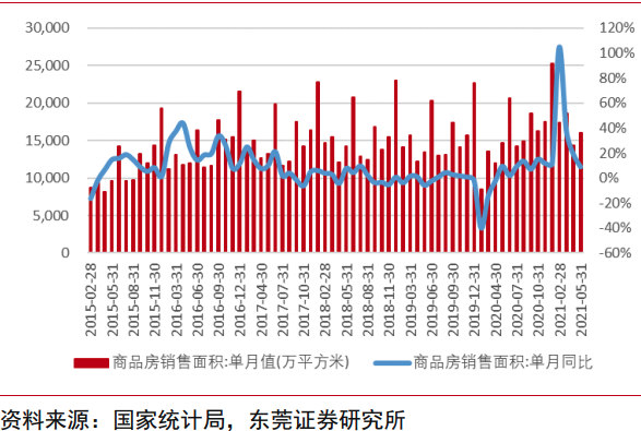 究其原因,房地产销量是决定家电销量的主要驱动因素。从近5年的全国商品房销售面积可以看出,同样是在2017年以后,中国商品房销售面积就几乎维持在0增长水平,只有疫情影响导致2021年一季度同比增长较高。
