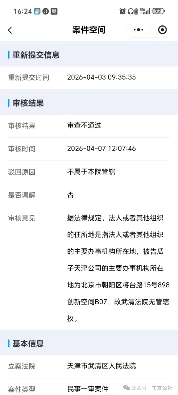当他依据购车凭证向天津市武清区人民法院提起诉讼时,却收到了意外的答复。法院工作人员告知,根据法律规定,法人或者其他组织的住所地是指其主要办事机构所在地,故武清法院对该案无管辖权。