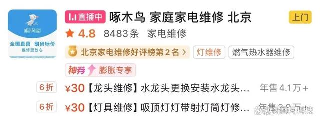 起因仅仅是家里的电闸保护隔离一直亮红灯,她在手机中随机搜索上门维修服务,发现啄木鸟维修的排名非常靠前,“应该比较正规”,于是便下单预约了师傅上门维修。