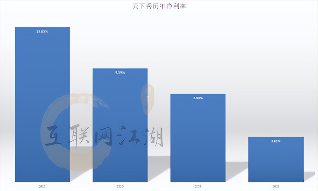 事实上,如果把这两份净利接连腰斩的不及格成绩单放到更长远的时间线上来看,也几乎称得上是天下秀近4年以来业绩增速表现最差的一次。