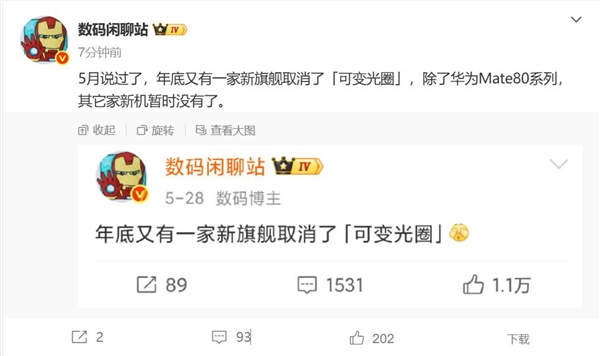 友商都放弃了!华为Mate 80系列将继续支持可变光圈:f/1.4-f/4.0随心切换快讯