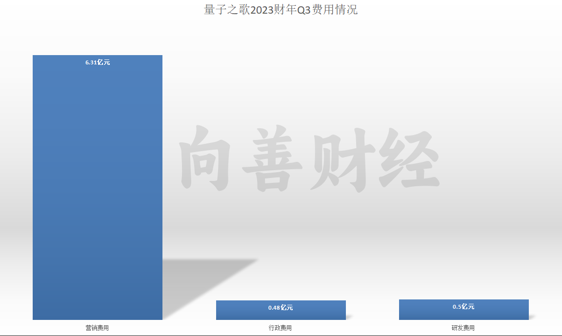 如果从费用来看,量子之歌的营销、行政、研发三项主要费用都面临一定程度的增长,并且成为了量子之歌净利润转正的重大阻碍。数据显示,在2023财年第三季度,量子之歌的营销费用为6.31亿元,同比2022财年第三季度4.93亿元的销售和营销费用,增长高达28.16%;一般及行政费用为4831万,同比增长37.43%;研发费用为4960万,同比增长4.86%。