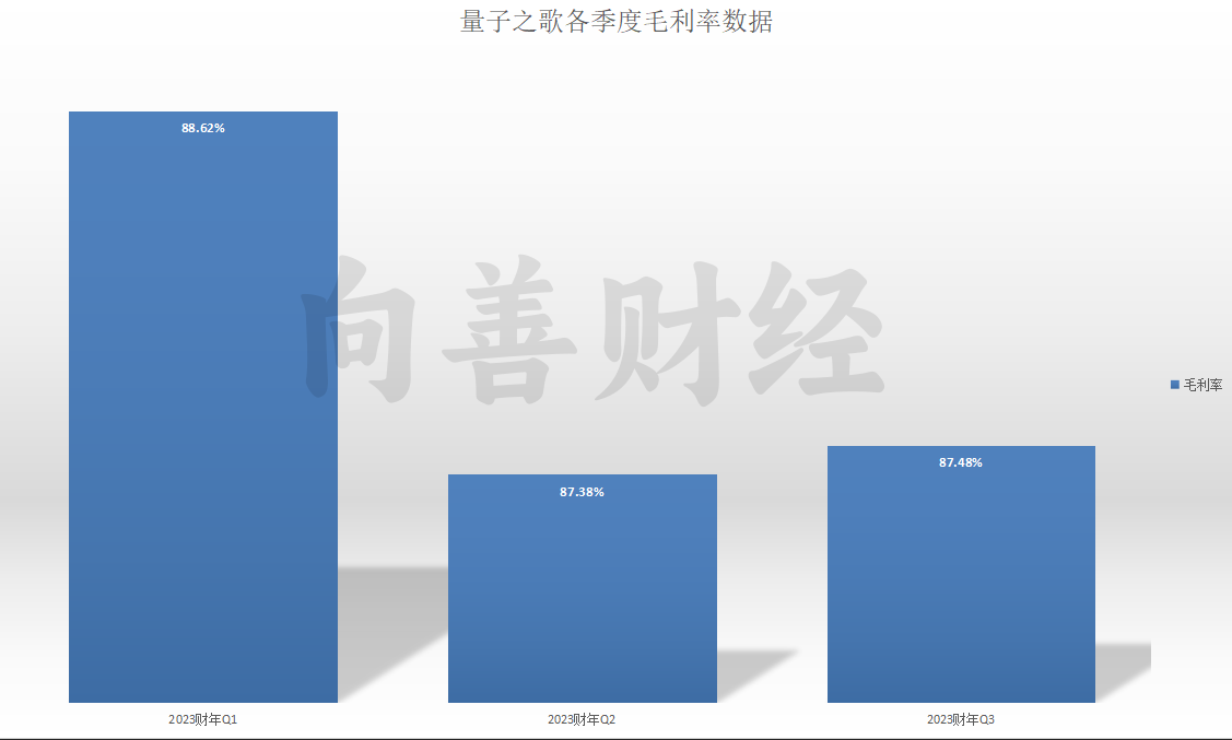 这让量子之歌具备令人羡慕的高毛利特征。数据显示,量子之歌在2023财年第一季度、2023财年第二季度、2023财年第三季度的毛利率分别为88.62%、87.38%、87.48%。