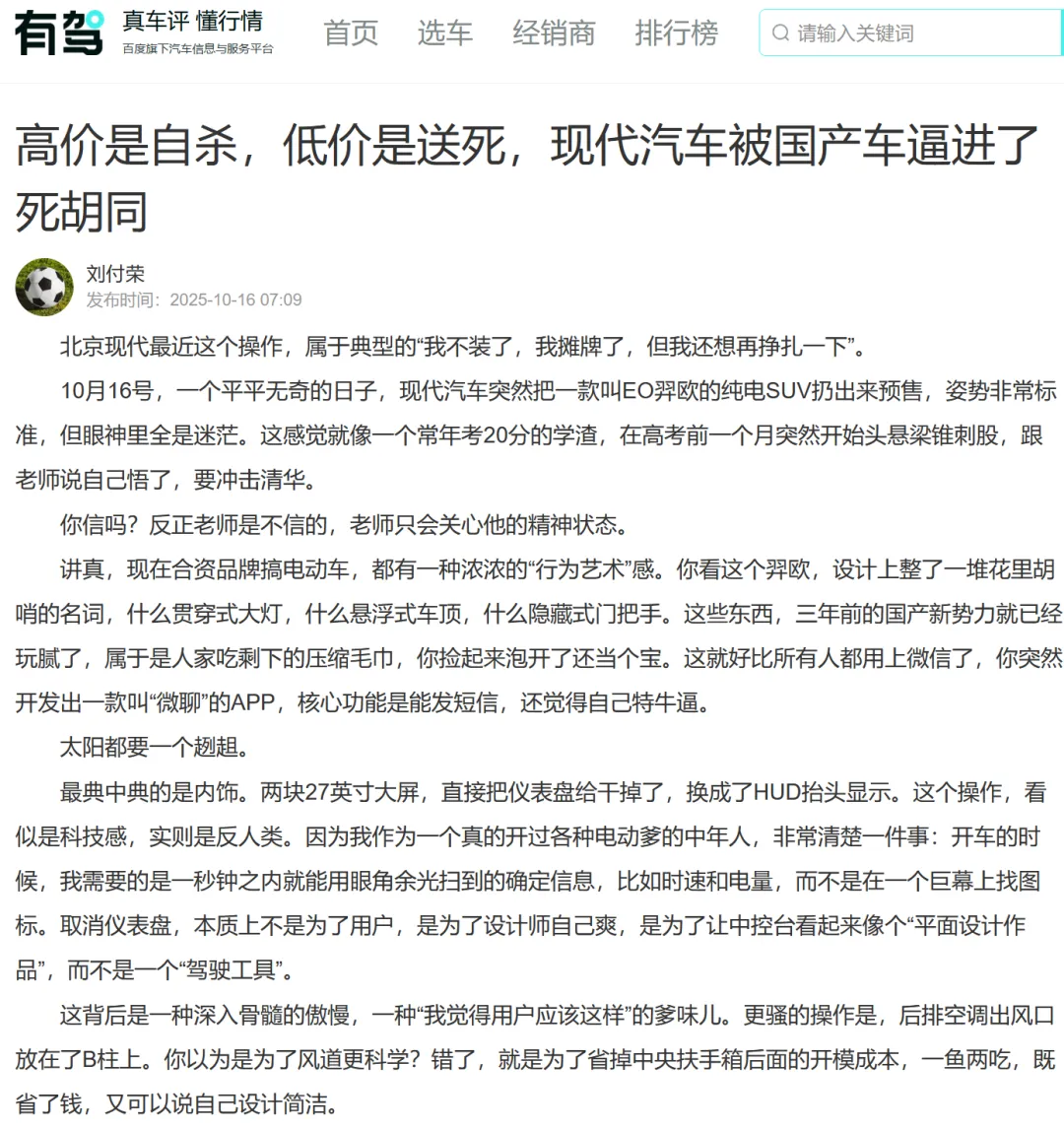 更尖锐的声音直指ELEXIO的定价策略——“高价是自杀,低价是送死”。这种民间舆论的极端化,虽显夸张,却真实反映了北京现代市场信任的坍塌与品牌话语权的消失。