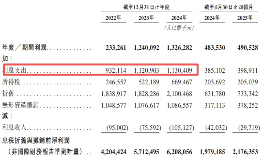 更触目惊心的是其沉重的利息负担。2022年至2024年,公司利息支出分别高达9.32亿元、11.21亿元、11.30亿元,而同期归母净利润仅为3.94亿元、10.83亿元和9.61亿元。利息支出占净利润比例高达236.55%、103.51%和117.59%。对于一家寻求上市的公司,这样的盈利与债务失衡状态,必然会引发市场对其持续经营能力的深度考量。