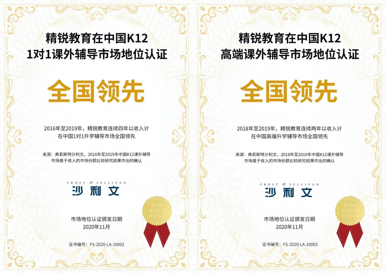 据第三方权威机构沙利文数据表示,2016年至2019年,精锐高端辅导连续4年在中国1对1升学辅导市场全国领先;2018-2019年,连续两年在中国高端升学辅导市场全国领先。