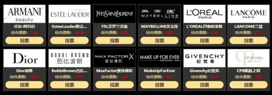 在粉底行业发起的关于粉底喜爱度的投票中,一共有16484位网友参与了此次投票,最终排在前十二位的是以下这些品牌。总体来看,依旧是大品牌居多。