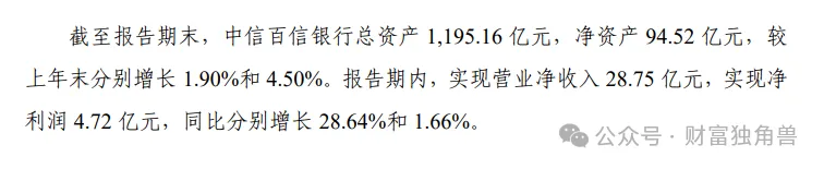 近日,中信银行发布2025年年度报告,百信银行2025年的经营结果也呈现出来。报告显示,截至报告期末,百信银行总资产1280.86亿元,净资产104.16亿元;实现营业收入59.29亿元,净利润4.53亿元。