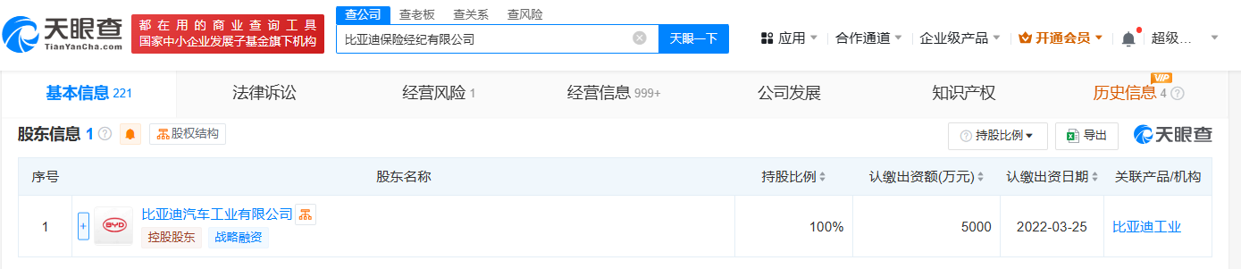 该公司成立于2022年3月,法定代表人为周亚琳,注册资本5000万人民币,由比亚迪汽车工业有限公司全资持股。