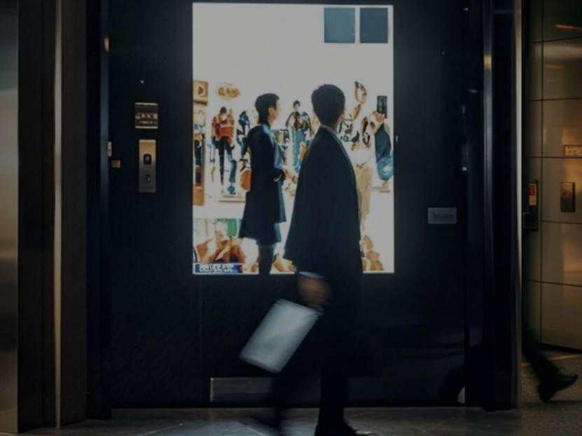 折角屏则部署于梯厅打卡机入口,覆盖大厅与电梯等候厅核心动线,既能分屏呈现“海报+视频”组合内容,又能营造裸眼三维效果,将成都太古里式的沉浸式体验搬进职场,让广告自带“吸睛属性”。