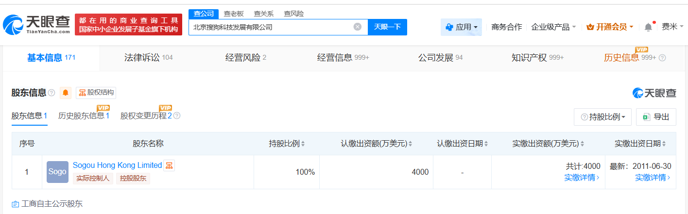 该公司成立于2006年2月,注册资本4000万美元,经营范围包括计算机系统集成、销售自行研发的软件产品、技术进出口等,由Sogou Hong Kong Limited全资持股。
