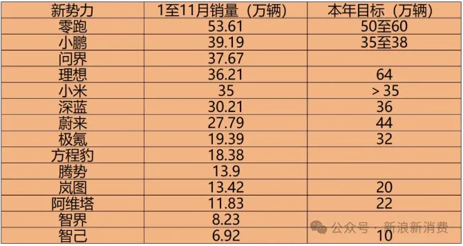 (部分新势力品牌销量对照 制图:界面新闻记者 刘泽然)
