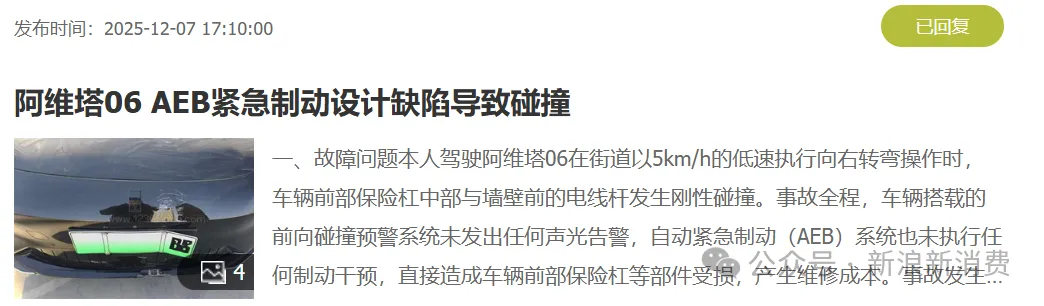 阿维塔06的销量下滑,或许还有产品质量问题的原因。在汽车投诉平台上,有车主投诉“阿维塔06 AEB紧急制动设计缺陷导致碰撞”,还有车主称“阿维塔06高速行驶过程中失速,续航虚标”。