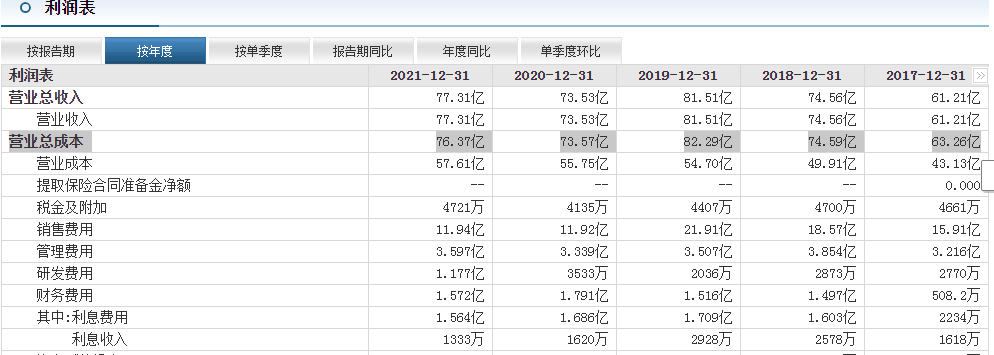 虽然从三元股份的营业总成本构成来看,其财务费用并不算是最高的,但对于一家2021年净利润仅有2.45亿元的公司来说,每年超亿元的利息费用足以决定着三元股份的业绩表现……