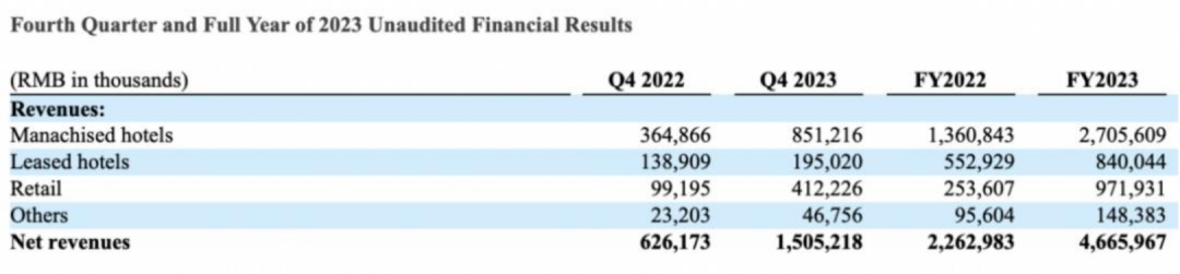 3月末,亚朵发布了2023年第四季度及全年财报。