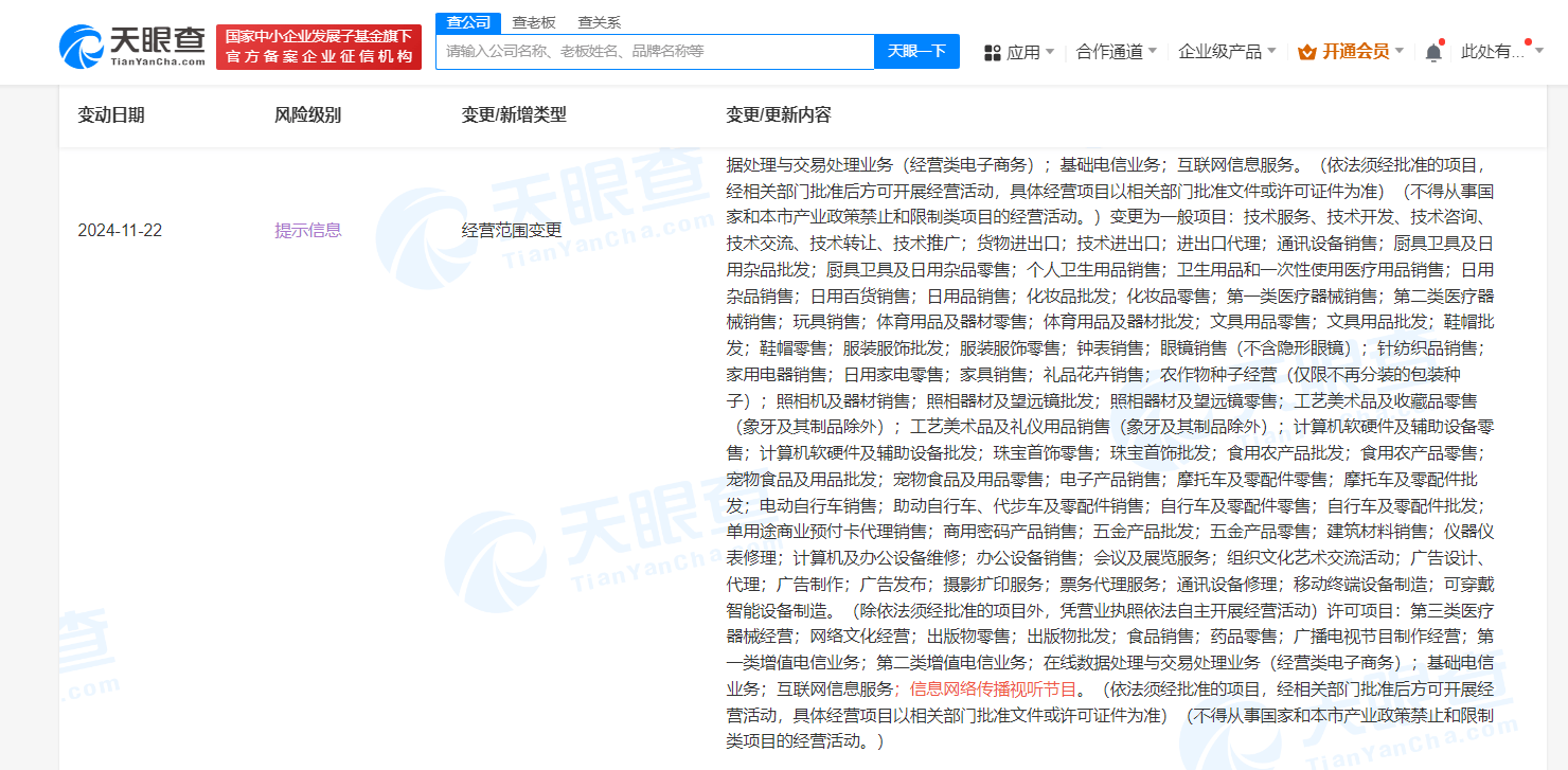 天眼查App显示,近日,小米科技有限责任公司发生工商变更,经营范围新增信息网络传播视听节目。