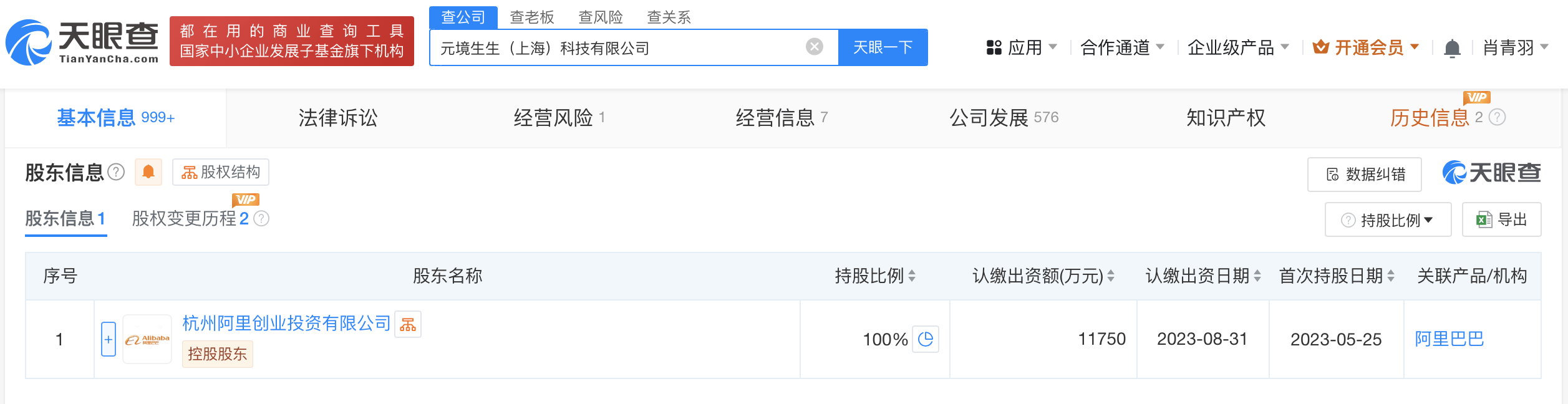 天眼查App显示,近日,元境生生(上海)科技有限公司发生工商变更,注册资本由1000万人民币增至约1.18亿人民币,增幅1075%。