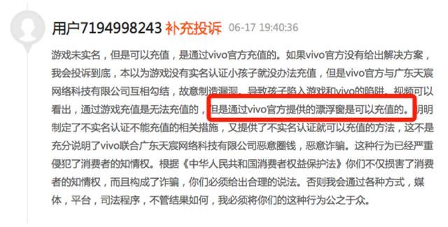 而面对那么多家长投诉,vivo作为游戏发行推广中最重要的一个环节,却对投诉置之不理,社会责任心何在?