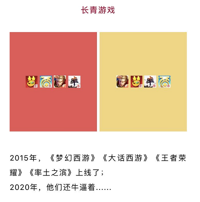放眼其他行业,建立壁垒这一点也同样适用。以手游市场为例,曾有媒体报道,手游的平均生命周期只有6-12个月,50%的收入在第一个月产生。而最近一篇刷屏游戏圈的2015年和2020年对比文章则表示,手游市场还是不乏长青游戏,如《梦幻西游》、《大话西游》、《王者荣耀》、《率土之滨》等。