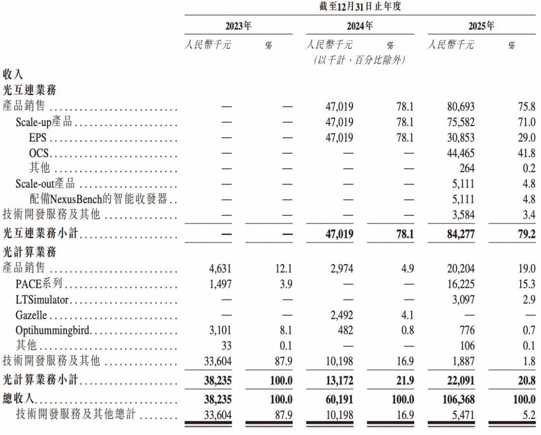 光互连业务已成为主力,收入占比从2024年的78.1%微调至2025年的75.8%,但绝对额大幅增长。值得注意的是,光计算业务的收入模式在2025年发生质变,从依赖“技术开发服务”转向“产品销售”,标志着其光计算产品开始被市场直接接纳。