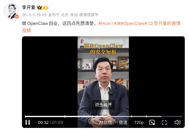 李开复:做OpenClaw创业,要先解决安全短板快讯