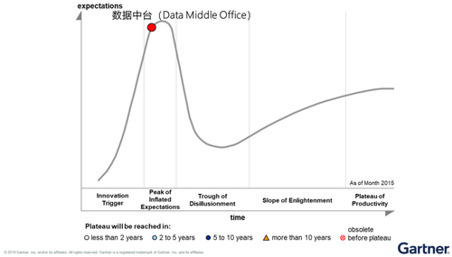 数据中台是中国本土诞生的一个名词,很多企业在“什么是数据中台”和“我要上XX中台”徘徊。其炒作程度跟当年的“大数据” 一词有的一拼,如果用Gartner的炒作周期图来看,数据中台目前已经逼近炒作的顶峰。