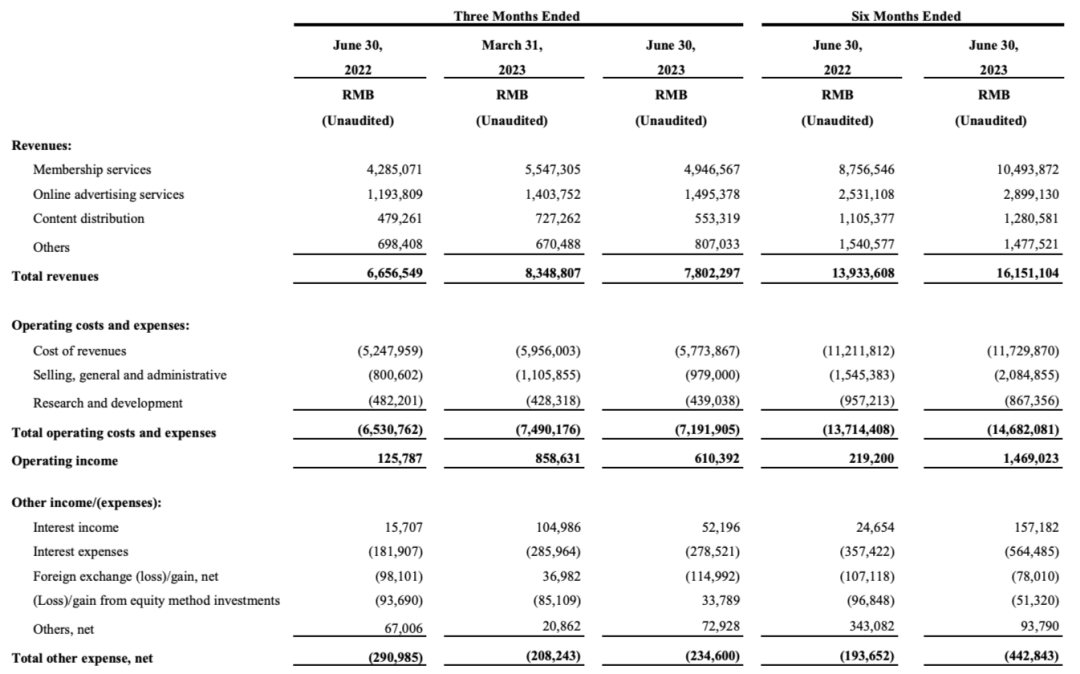 爱奇艺Q2财报