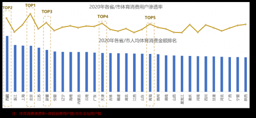 京东大数据显示,从人均体育消费金额来看,西藏、浙江和上海的消费能力最强;从体育消费的渗透率来看,北京、西藏、新疆、天津和青海的全民健身氛围最浓。