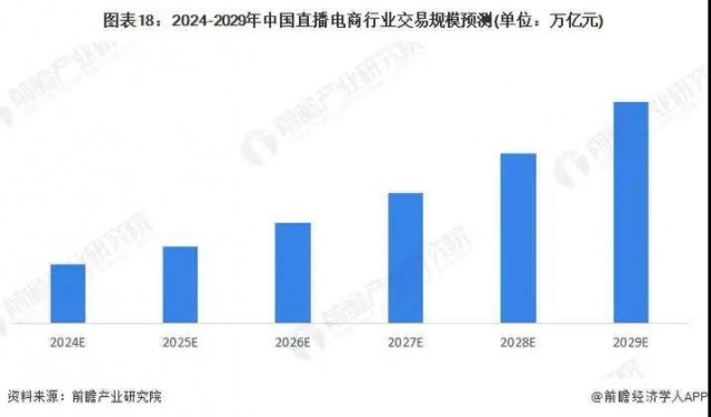 这也决定了,接下来直播电商行业仍将飞速发展。前瞻产业研究院披露的数据显示,2029年,中国直播电商交易规模将达19万亿元,2024年-2029年的复合增长率为30%。