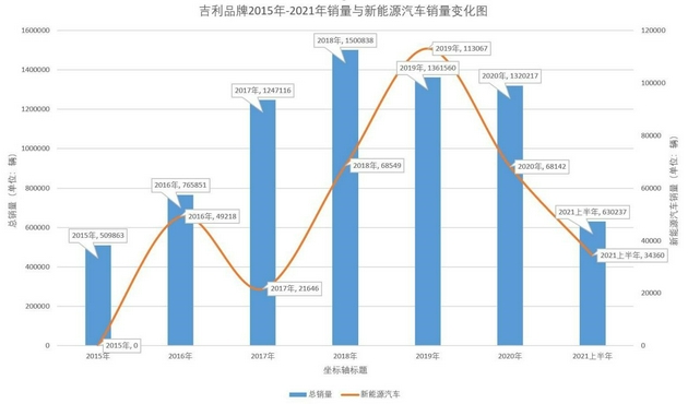 但吉利品牌的新能源汽车合计销量仅为34360辆,吉利汽车披露的销量数据显示,2018年是吉利汽车的销量巅峰。