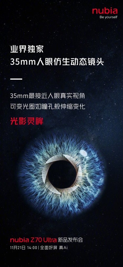 努比亚Z70 Ultra独家搭载35mm人眼仿生动态镜头:支持可变光圈快讯