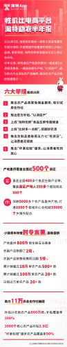 半年以来,淘特通过推出免佣金服务,上线“淘特优鲜”食品生鲜专属频道和“比拼多一点鲜”、百城百味活动等,从全国挖掘和吸引优质合作社源头供给好农产,目前全国已有11万产地合作社通过淘特拓展了线上销售渠道,农副产品补贴覆盖率达100%。其中,南阳土鸡蛋供应合作社天山牧业线上化90%以上,在淘特日销鸡蛋百万颗,甘肃民勤蜜瓜一天包销50亩。