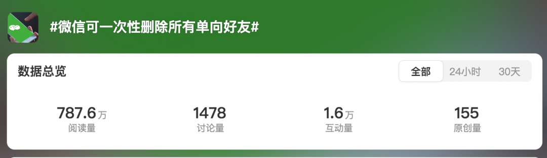 作为一款国民应用,微信的每一次功能更新都能引发热议。截至发稿,“微信可一次性删除所有单向好友”的微博话题阅读量已经超过787万。