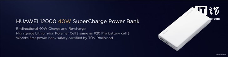 华为40W超级快充移动电源容量为12000mAh,获得德国莱茵TüV认证,支持40W超级快充。