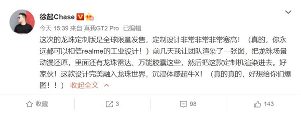 realme GT2 Pro将推《龙珠》定制版 徐起:定制设计非常非常非常赛高快讯