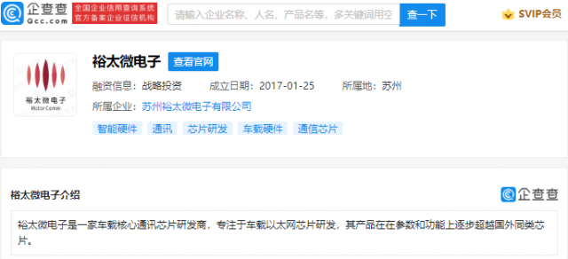 公司成立于2017年,裕太微电子是一家车载核心通讯芯片研发商,企查查信息显示。