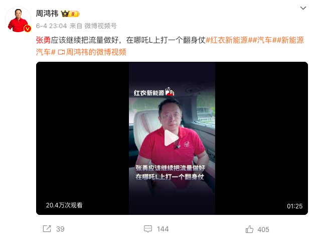 今年3月26日,哪吒汽车开启直播,周鸿祎现身直播间;
