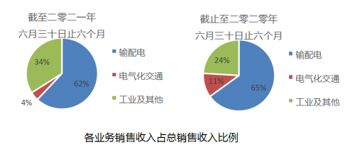 工业及其他领域方面,2021年上半年录得总销售收入人民币1.69亿元,与去年同期基本持平。其中,新能源发电领域业务和金属冶炼领域业务表现较好,分别录得销售收入人民币59.5百万元、人民币22.7百万元,较2020年同期分别增长91%、32%。电气设备领域录得销售收入人民币85.3百万元,较2020年同期下降26%。