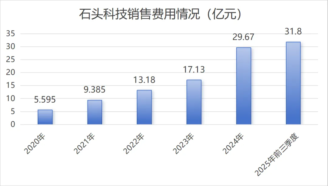 2025年第三季度,石头科技的销售费用率高达26.34%,这一数字几乎是同期传统家电巨头美的(9.0%)的2.9倍,海尔智家(10.1%)的2.6倍。